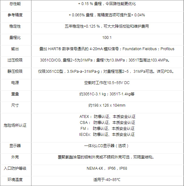 3051系列大致有:3051CD/CG/CA型差压/表压/绝压变送器、3051远传变送器