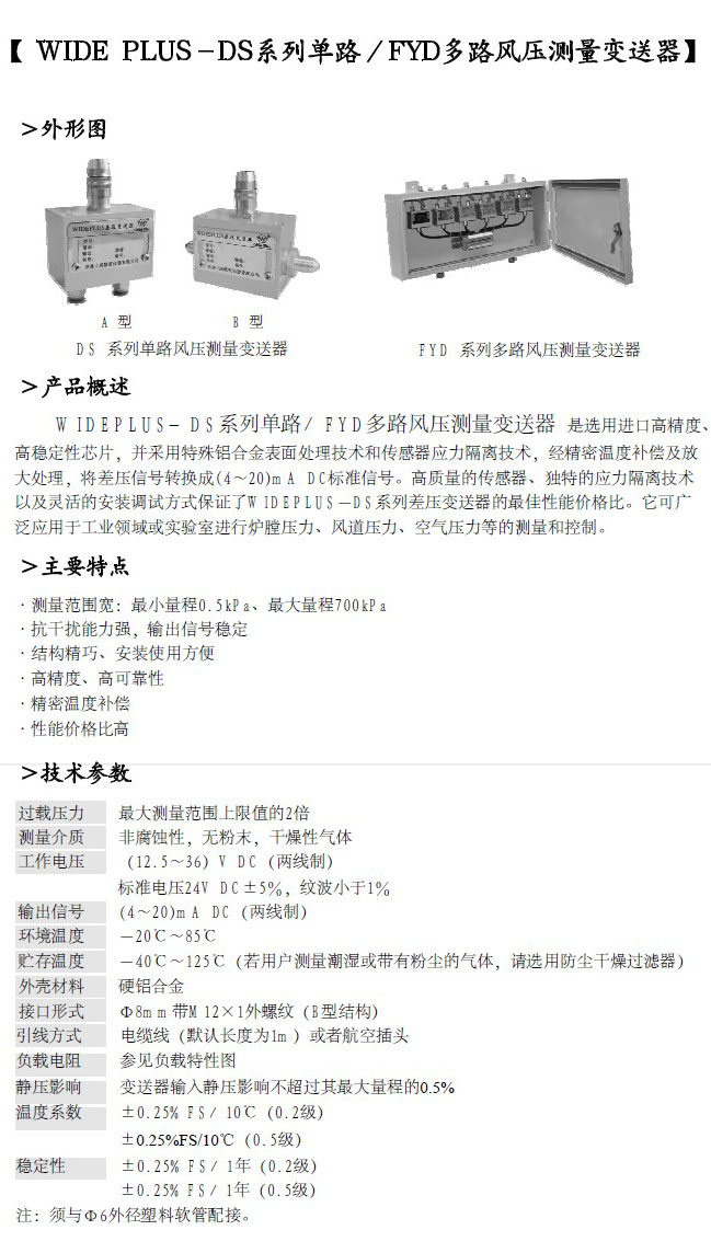 DS单路、FYD多路风压测量变送器