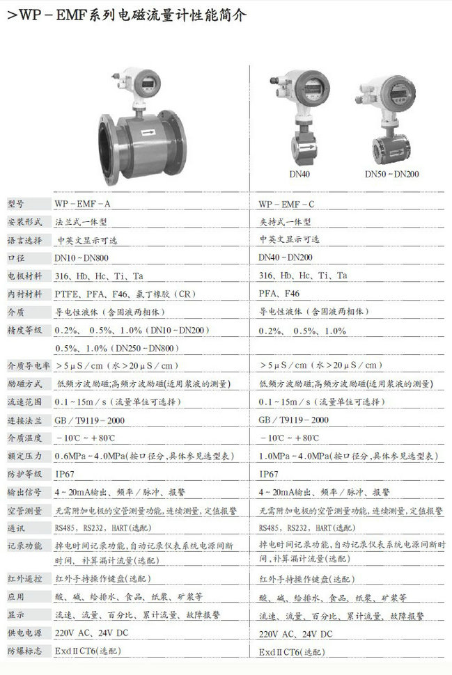 WP-EMF-A-B法兰式电磁流量计