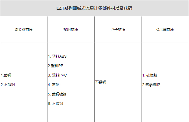 注: ①LZT有机玻璃转子流量计耐温<70℃,耐压0.4Mpa。