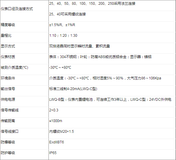 该类涡轮流量计按照供电方式、是否具备远传信号输出可分为LWQ-□B型和LWQ-□C型。
