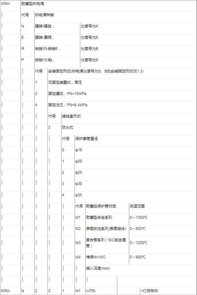★ 耐磨热电偶选型表