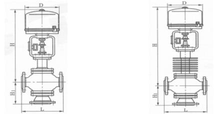 ZPSF型三通电动调节阀,是由直行程电子式电动执行机构和采用圆筒型薄壁窗口形阀芯的三通合流(分流)阀组成。具有结构紧凑、重量轻、动作灵敏、流量特性精确,直接接受调节仪表输入的(4-20mA DC 0-10mA DC或1-5V DC)等控制信号及单相电源即可控制运转,实现对工艺管路流体介质的自动调节控制,广泛应用于精确控气体、液体、蒸汽等介质的工艺参数如压力、流量、温度、液位等参数保持在给定值。适合于把一种流体通过三通阀分成二路流出或把两种流体经三通阀合并成一种流体的工况。