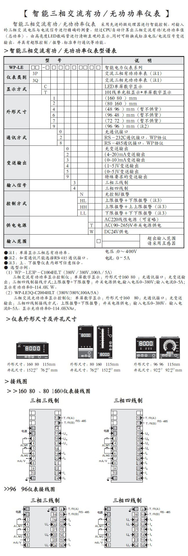 智能三相交流有功、无功功率仪表